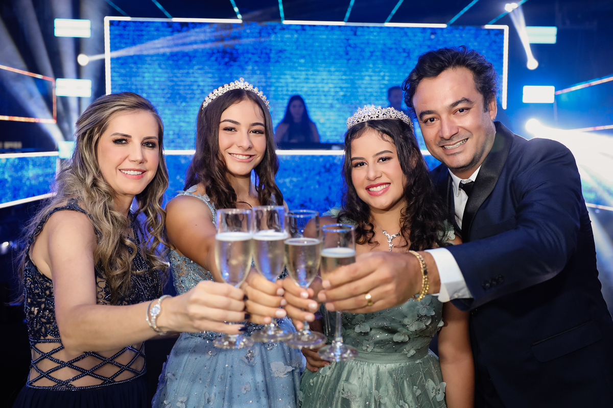 Aniversário de 15 Anos das debutantes gêmeas Mayara e Maysa, fotografado pela Jaque Risse, em Guariba - SP