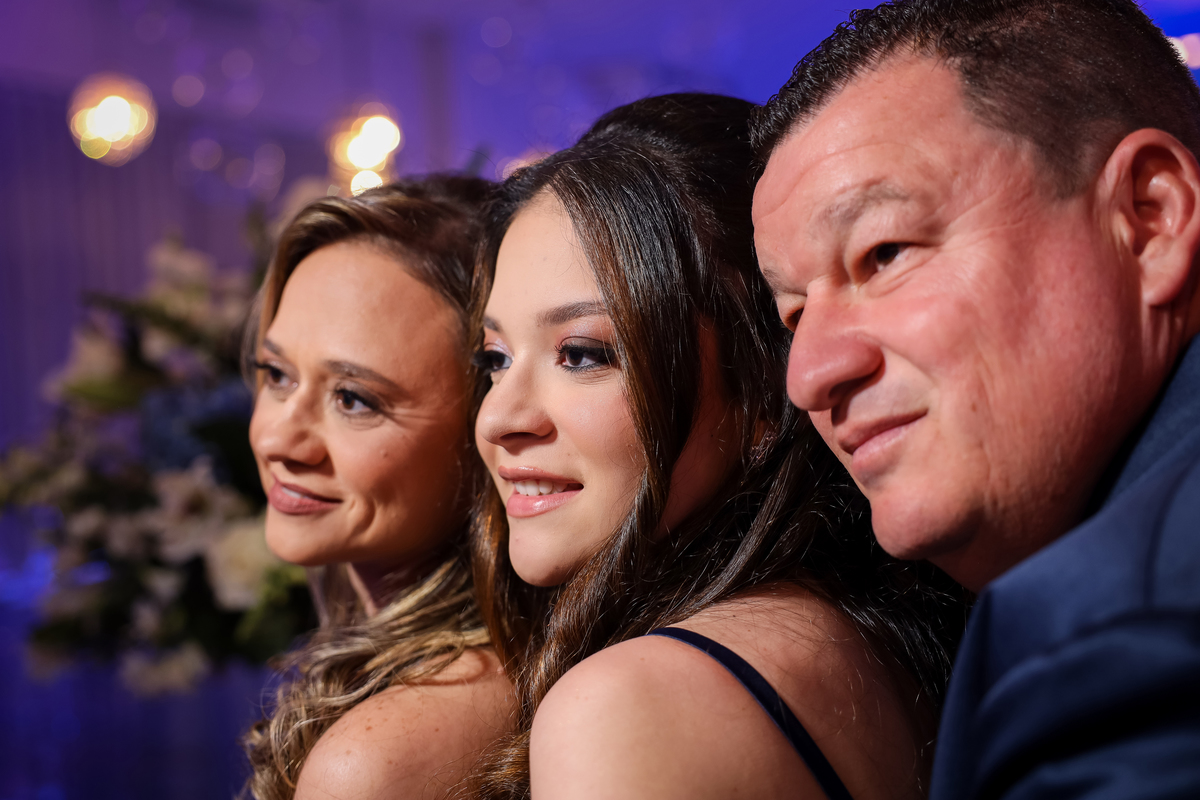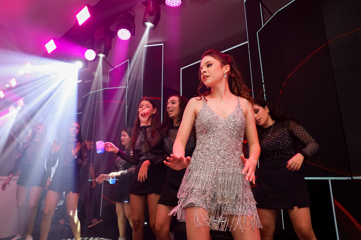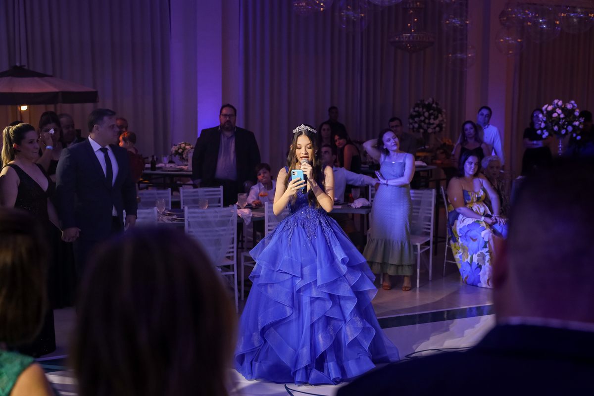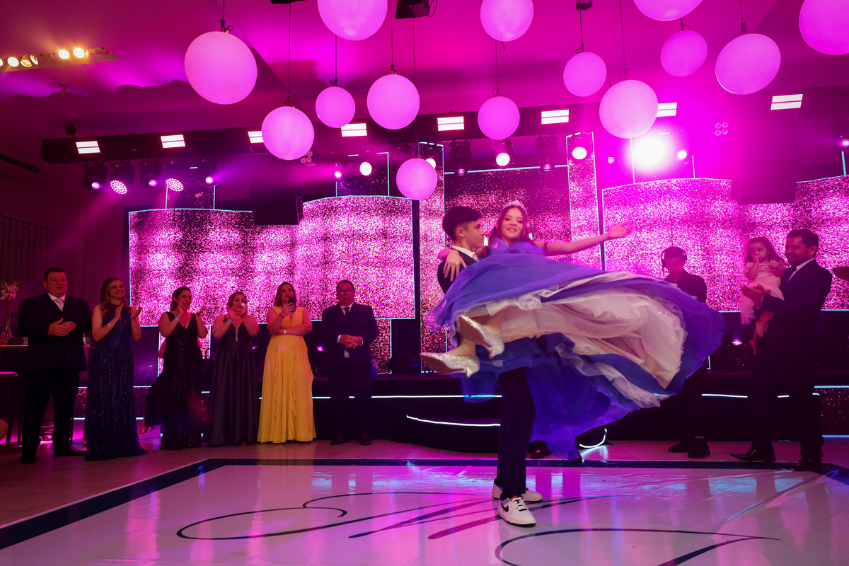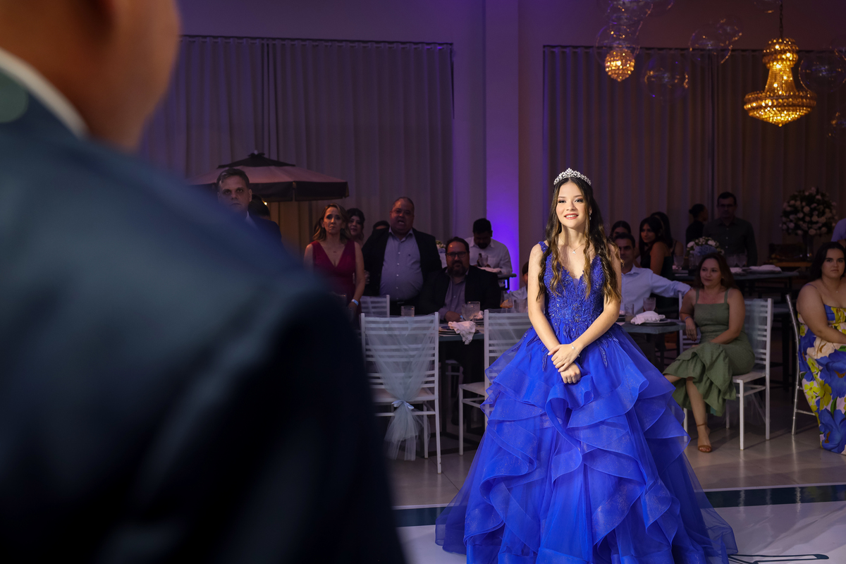 A debutante, radiante em seu vestido de princesa, chegou e encantou a todos com sua beleza e simpatia. A valsa, um momento emocionante, foi o ponto alto da noite, seguida por uma festa animada que durou até quase o amanhecer.