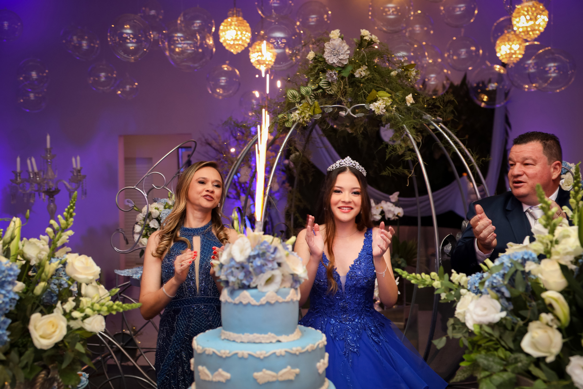 A noite do Aniversário de 15 Anos de Maria Júlia foi um verdadeiro conto de fadas! O salão Villa Eccny Eventos em Bebedouro se transformou em um reino encantado, com uma decoração inspirada na clássica história de Cinderela. Cada detalhe, desde os tons azuis pastéis até os elementos lúdicos, transportou os convidados para um mundo mágico e inesquecível.