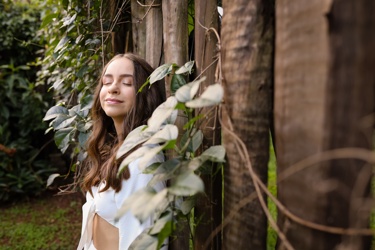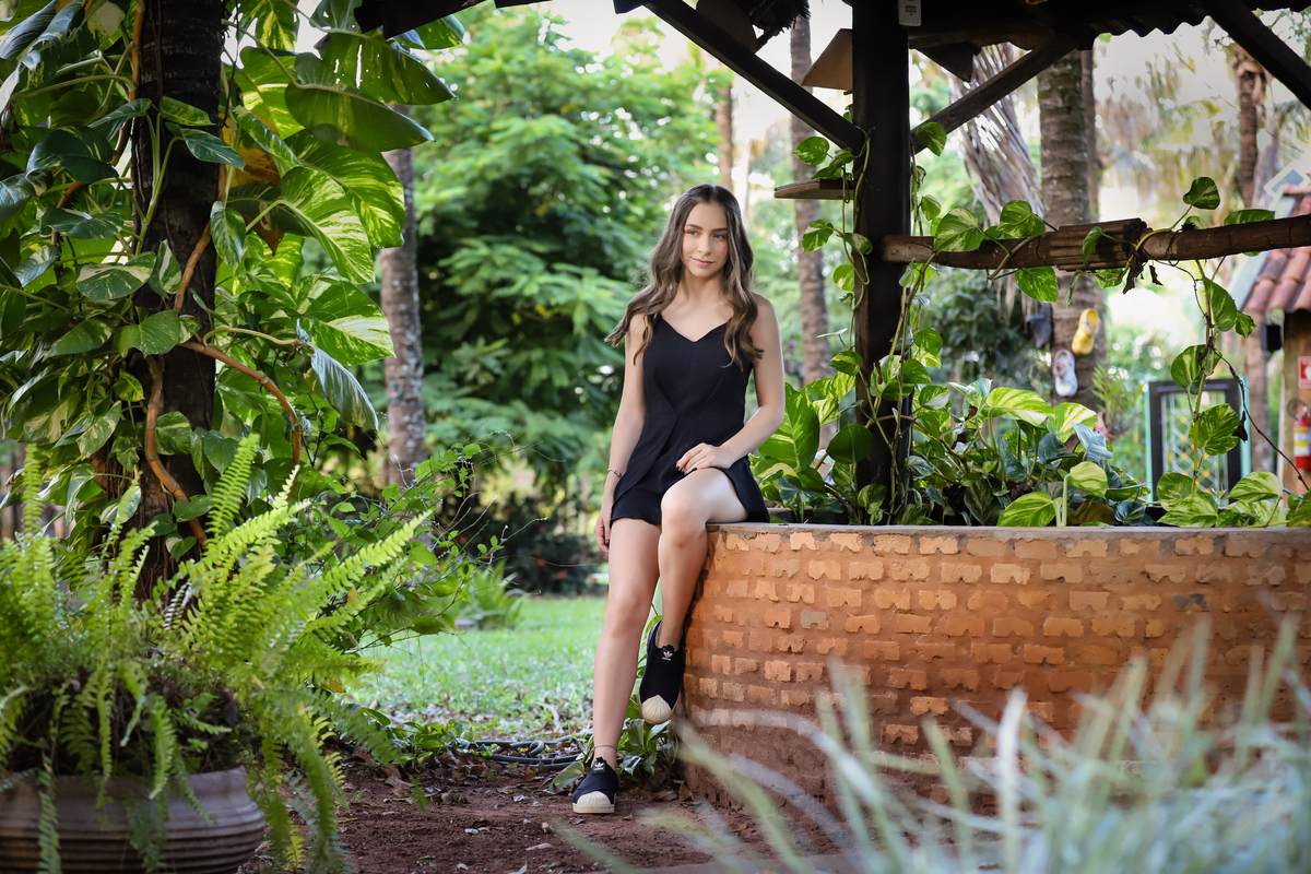 Ensaio de 15 Anos da Sarah, fotografado pela Jaque Risse, nos jardins da Aldeiah, na cidade de Bebedouro, SP