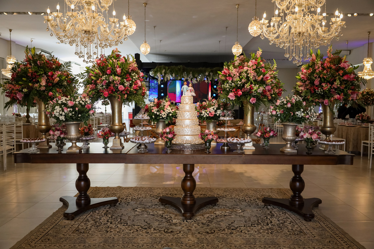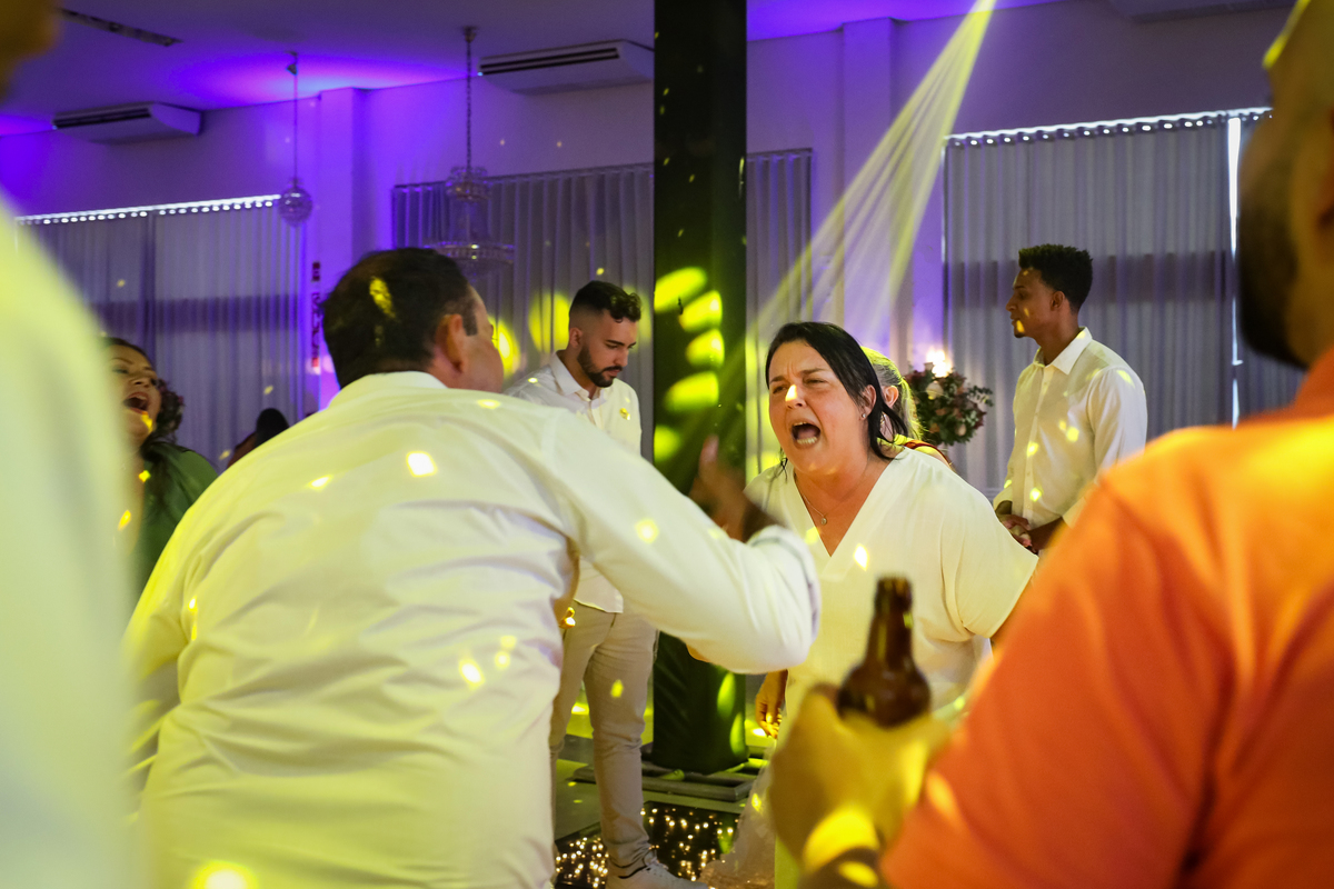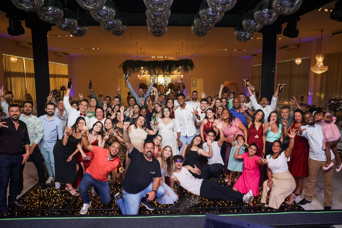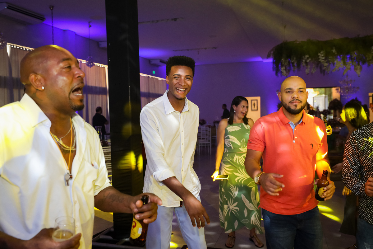 O salão estava lindamente decorado e a festa foi super animada, com música, boa comida e muita dança.