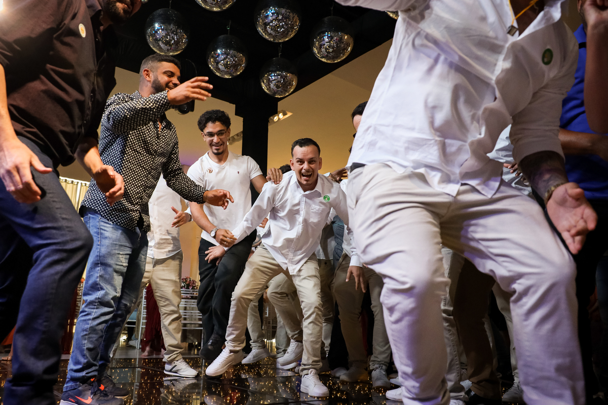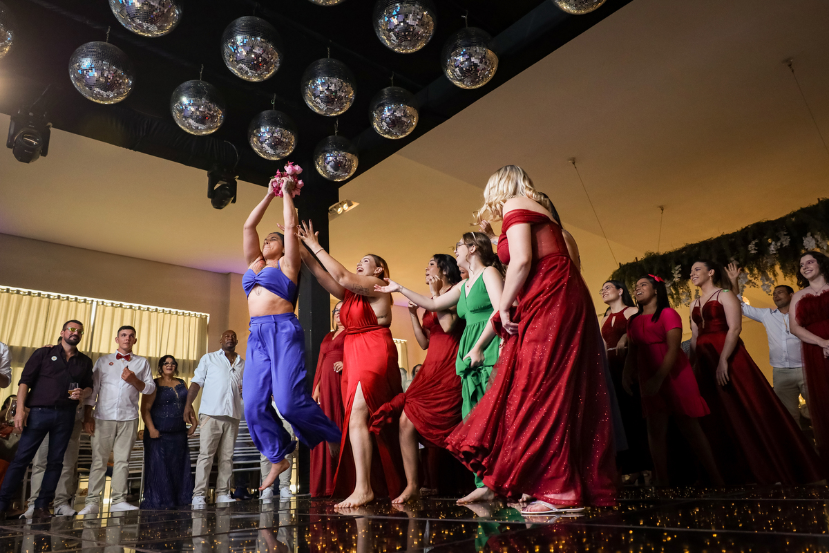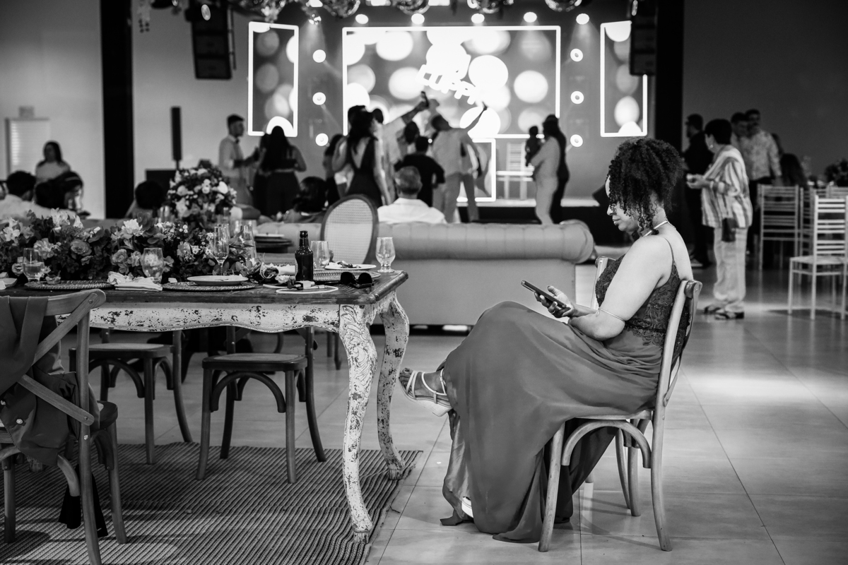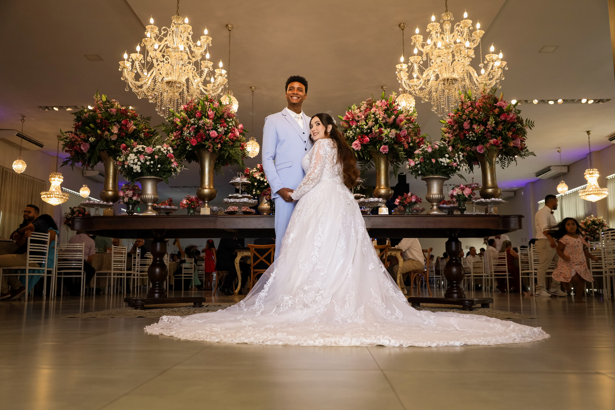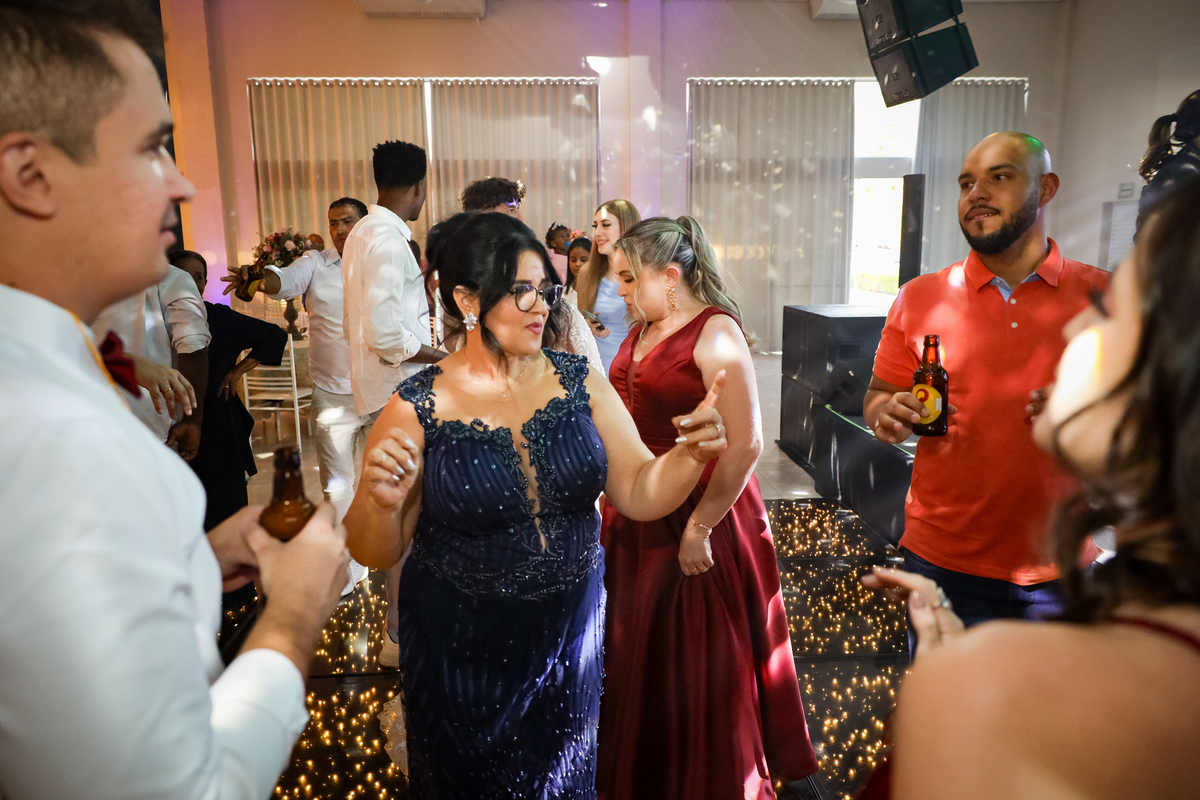 O salão estava lindamente decorado e a festa foi super animada, com música, boa comida e muita dança.