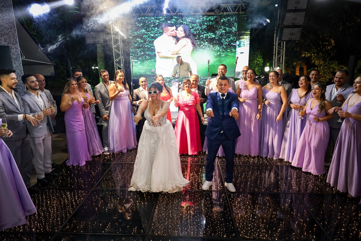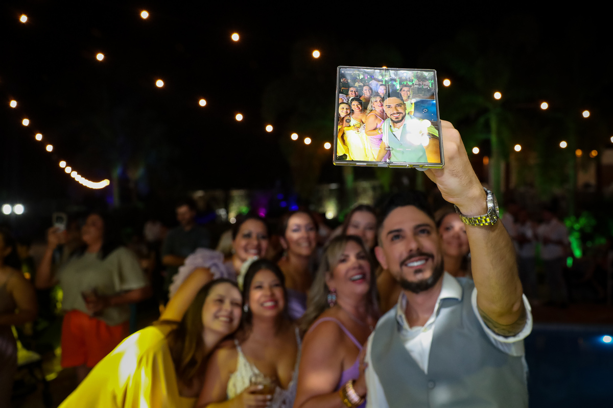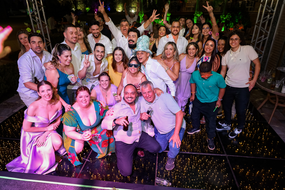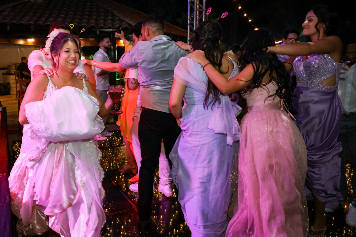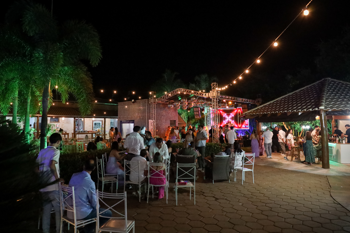A festa, que seguiu na própria chácara, foi marcada por muita alegria e descontração. A pista de dança, com a piscina como vizinha, proporcionou momentos inesquecíveis para os convidados.