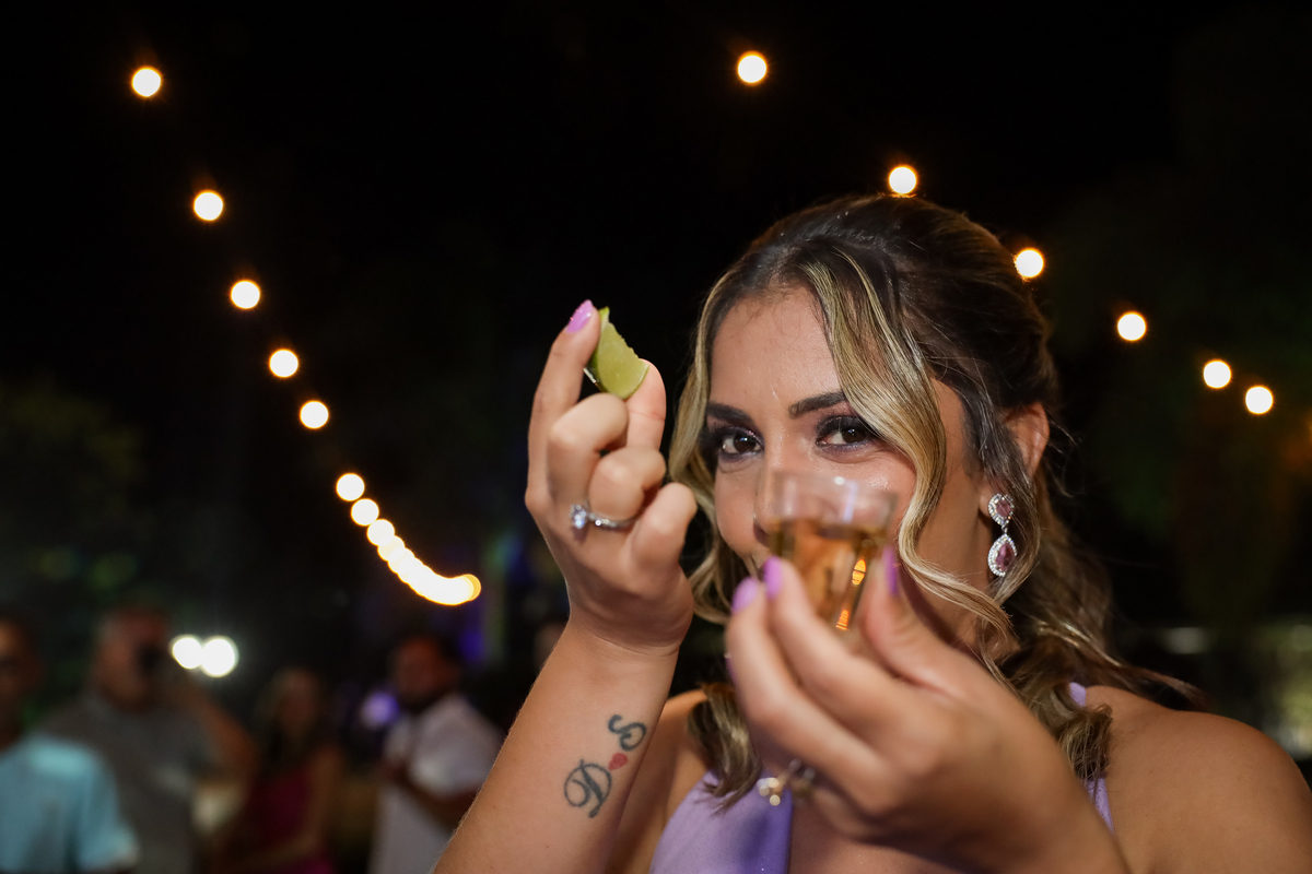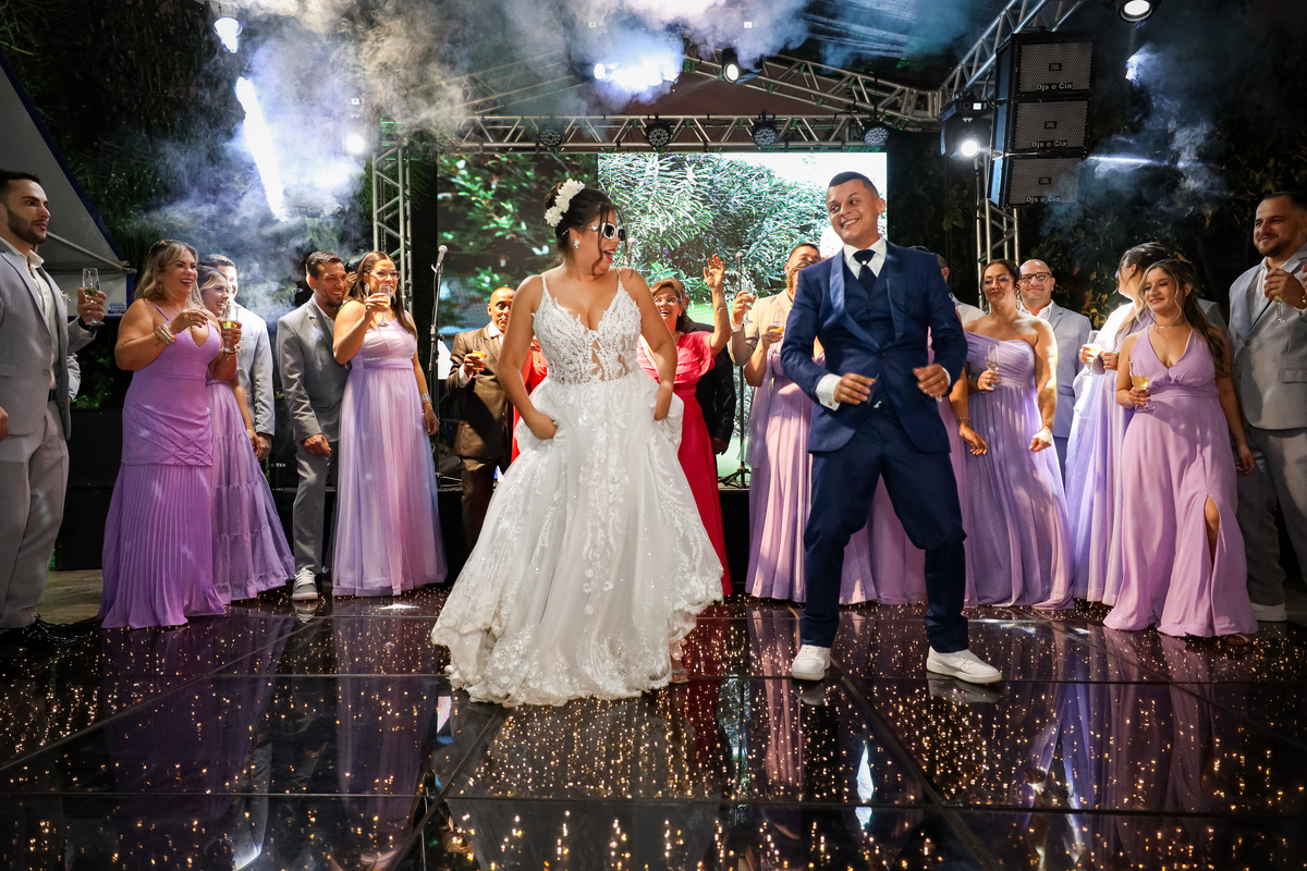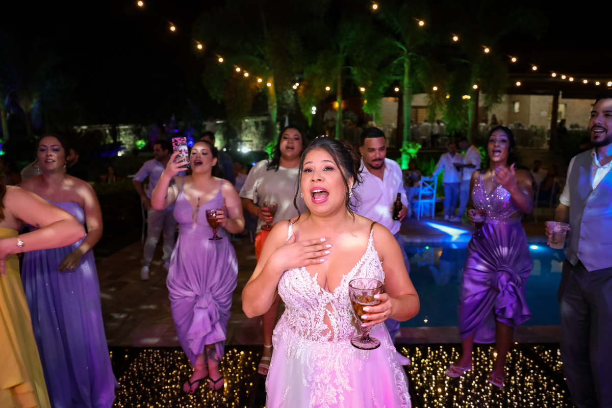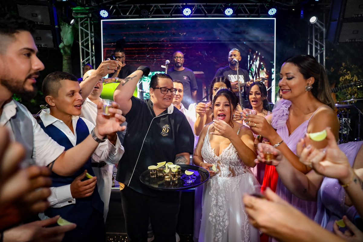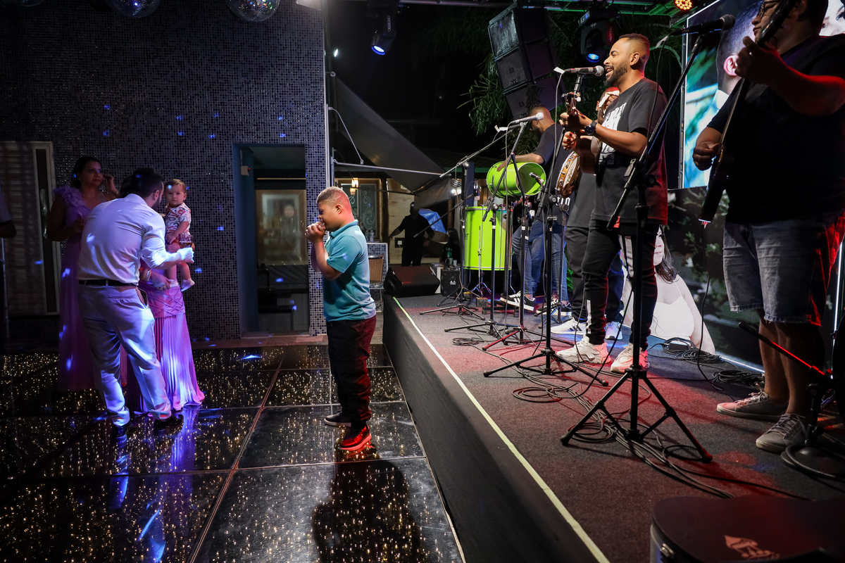 A festa, que seguiu na própria chácara, foi marcada por muita alegria e descontração. A pista de dança, com a piscina como vizinha, proporcionou momentos inesquecíveis para os convidados.