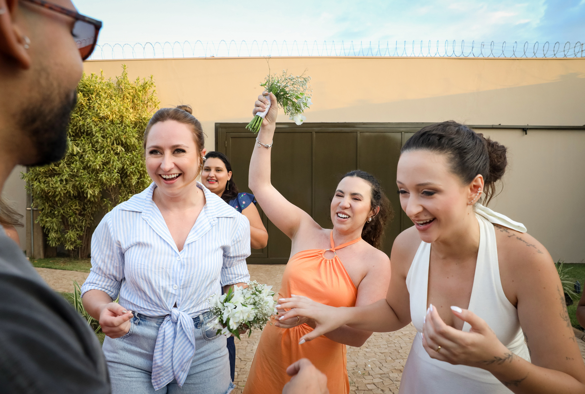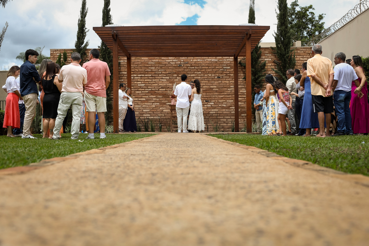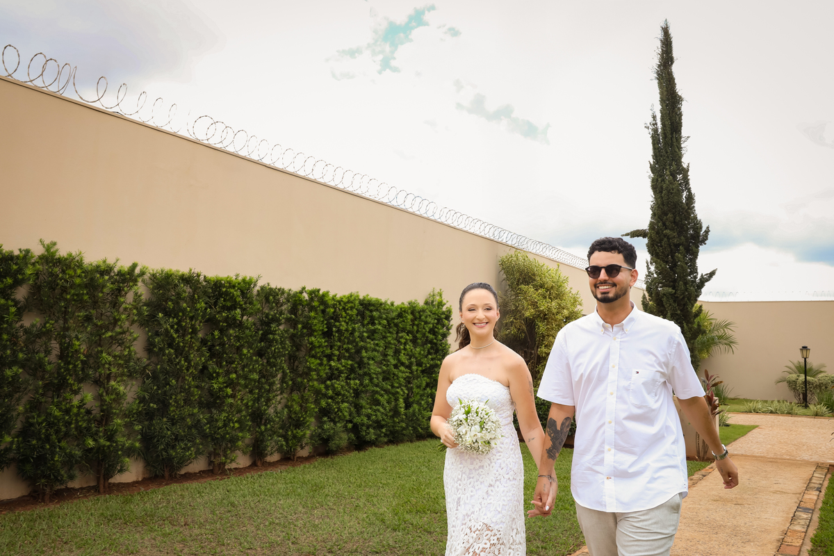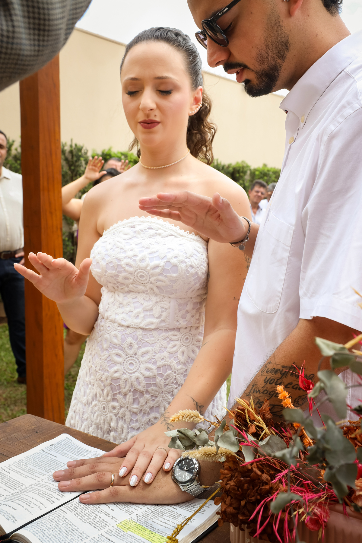 Logo após, o amor foi celebrado em uma bela cerimônia religiosa, seguida de uma recepção encantadora na Chácara Vale do Sol, que se transformou no cenário perfeito para esse dia inesquecível.