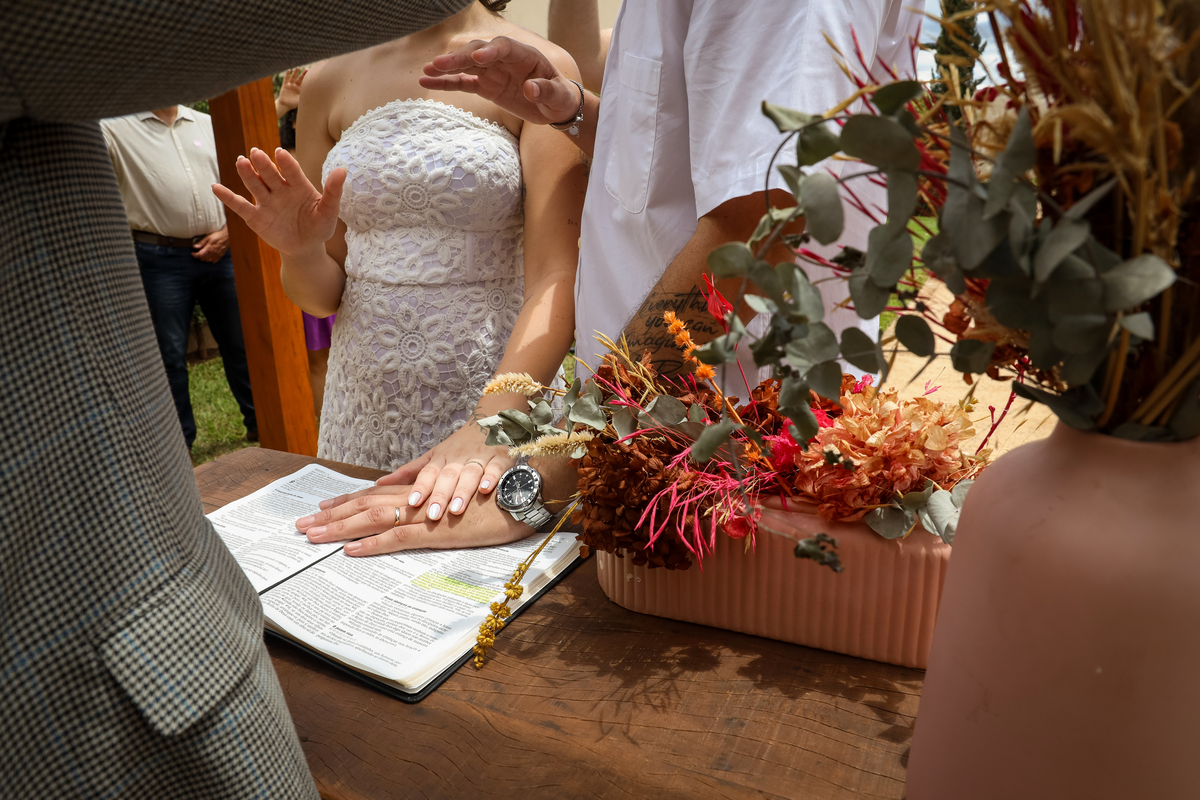 Rodeados por familiares e amigos, o casal oficializou sua união em um momento especial e cheio de significado.