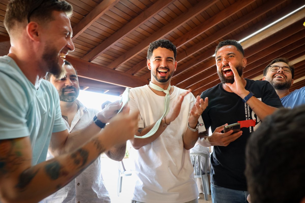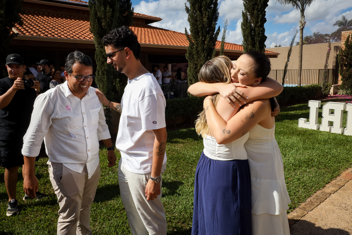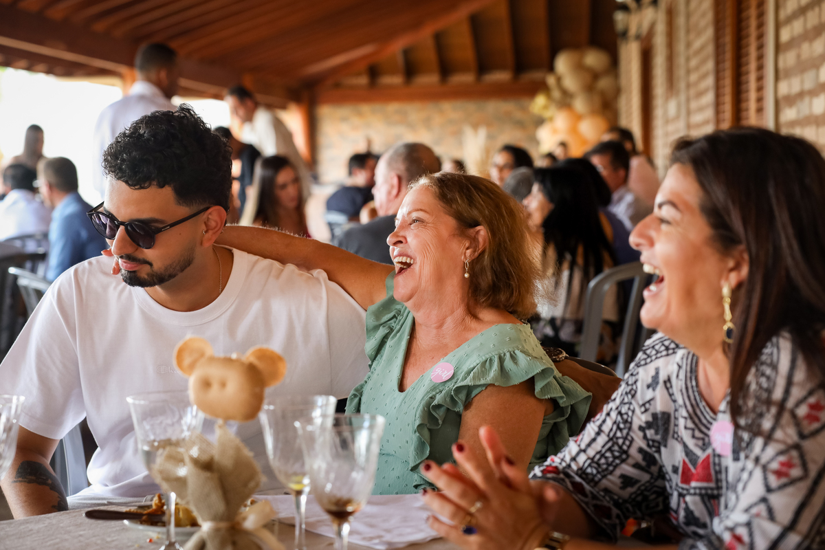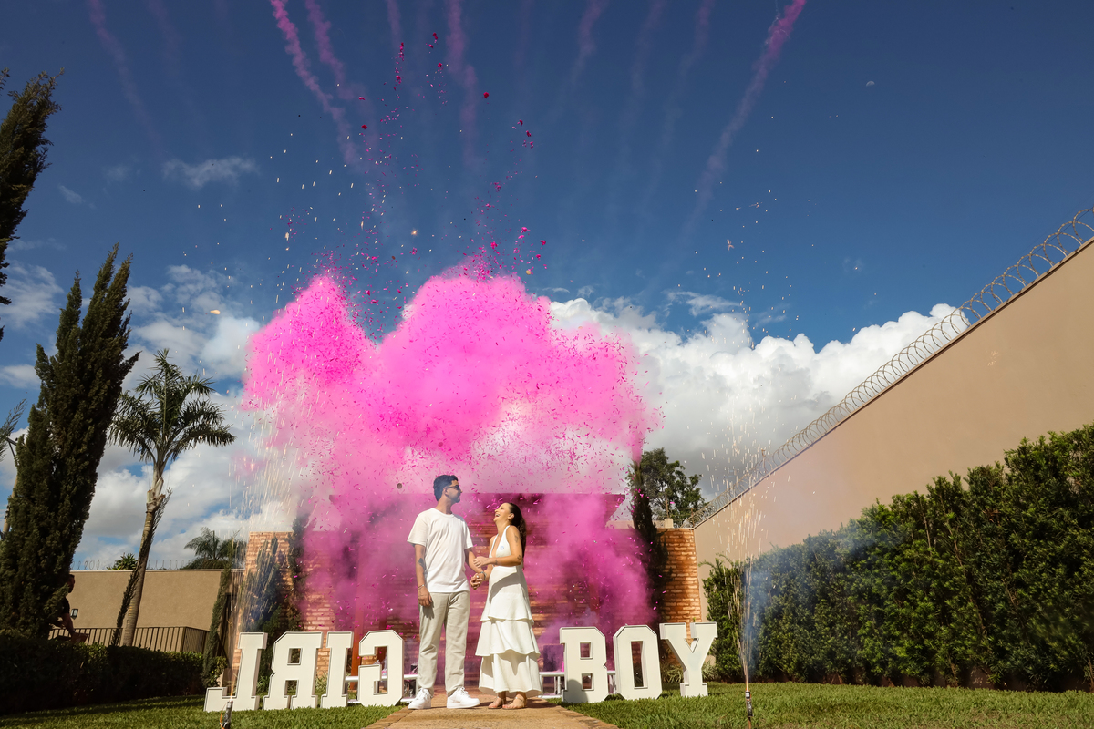 A celebração se tornou ainda mais especial durante o chá revelação da gestação de Laura, quando a fumaça e o papel picado rosa anunciaram, com muita emoção, que o casal espera uma menina!