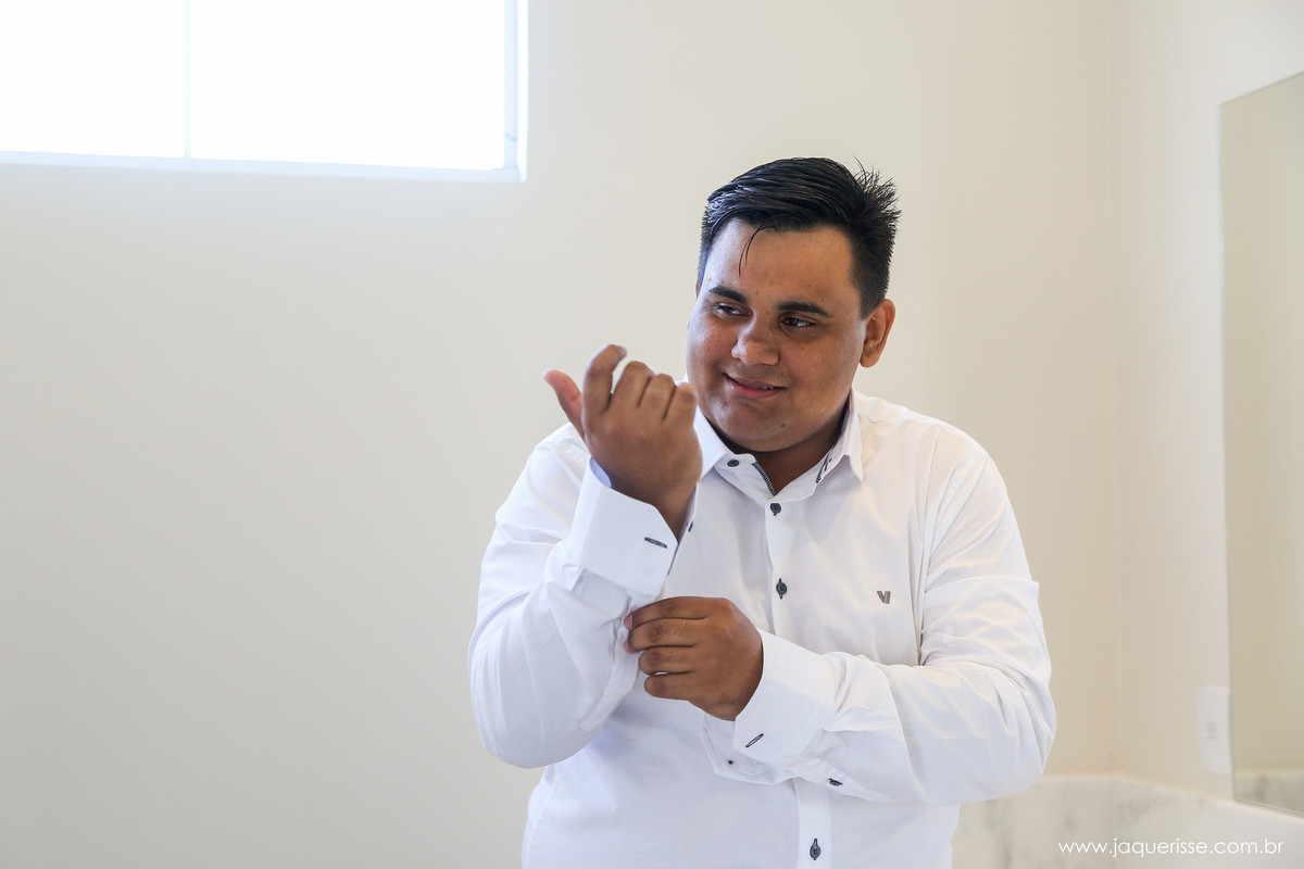 noiva sorridente com a maquiadora passando maquiagem em seu rosto no click da fotógrafa de casamento Bebedouro SP Jaque Risse