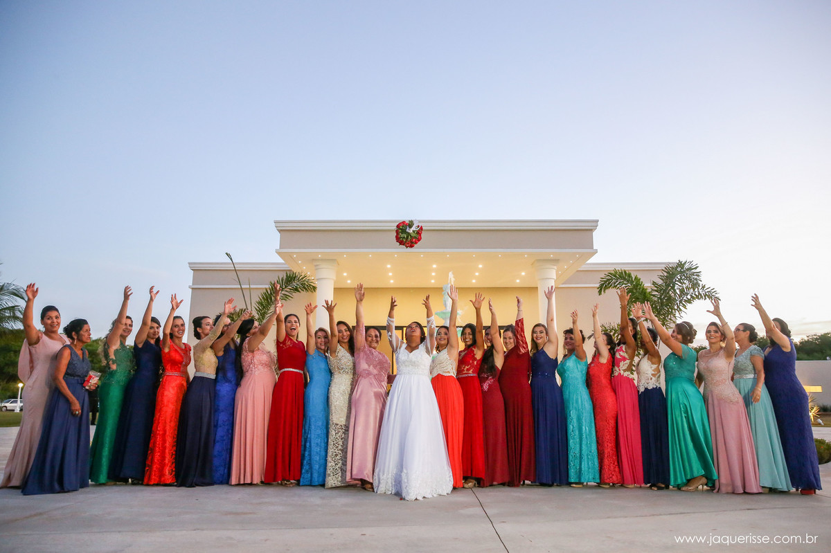 noiva com a mãe e as madrinhas levando as taças de champanhe ao alto para brindar no click da fotógrafa de casamento Bebedouro SP Jaque Risse