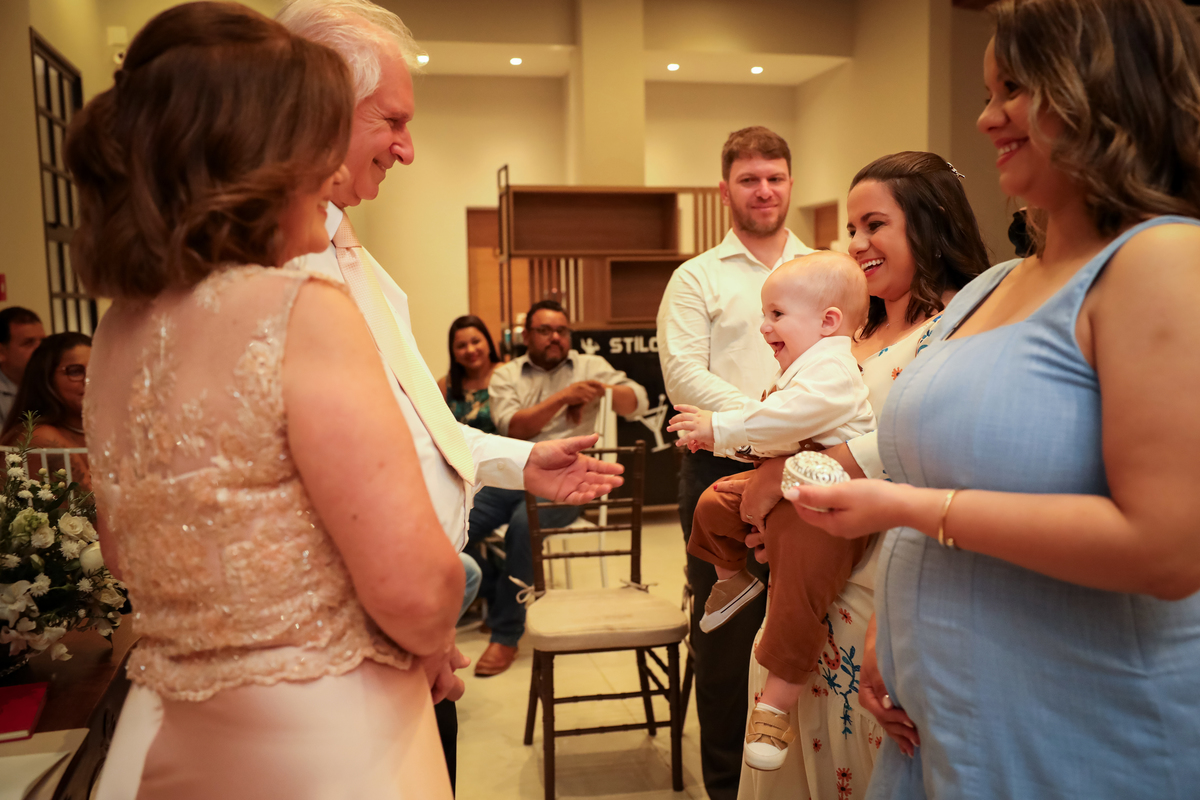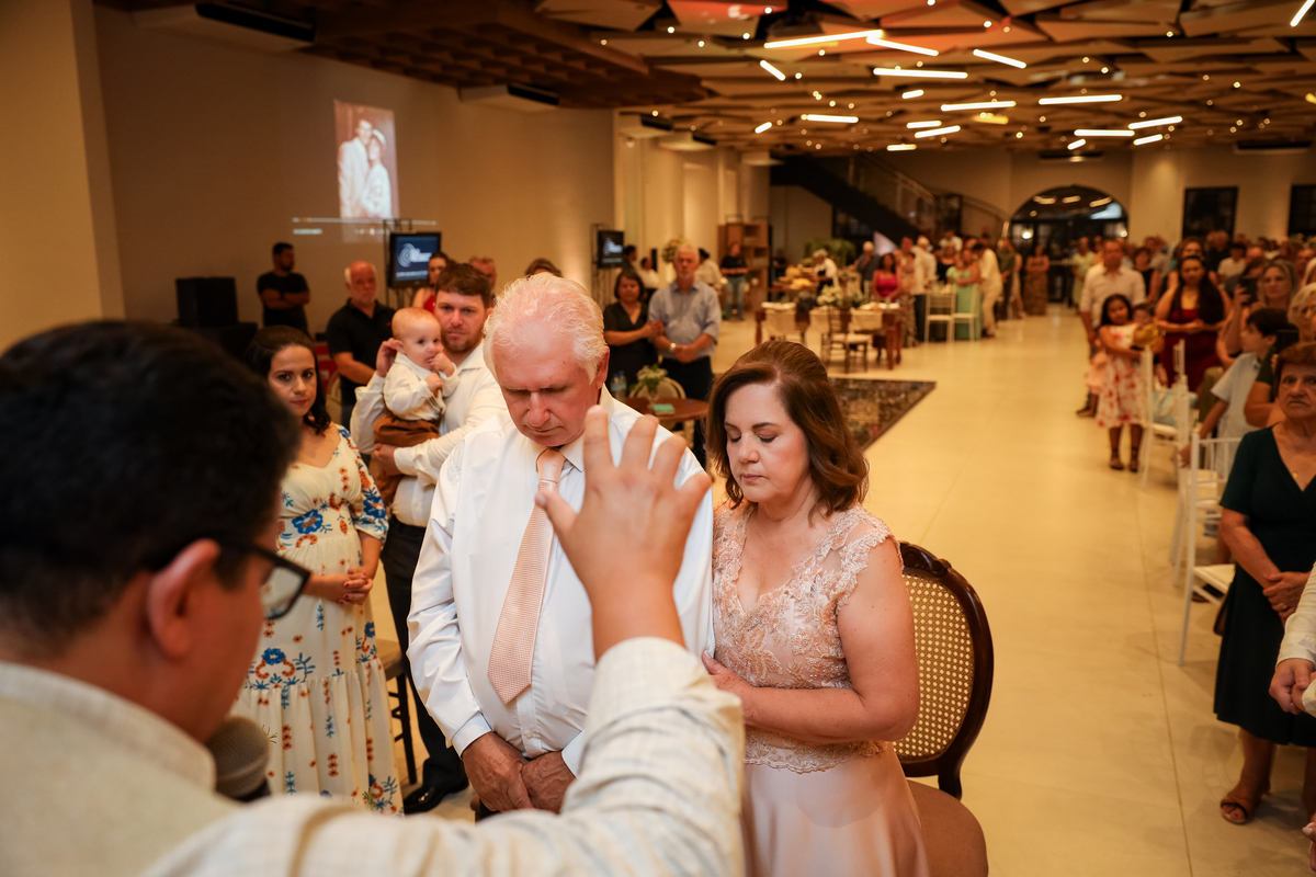 A cerimônia religiosa foi conduzida pelo padre Fernando que trouxe palavras inspiradoras sobre o matrimônio, reforçando a importância do respeito, da cumplicidade e da fé que sustentaram essa união ao longo dos anos. Entre olhares apaixonados e sorrisos emocionados, Sônia e Melchior renovaram seus votos, reafirmando o compromisso de uma vida inteira juntos.