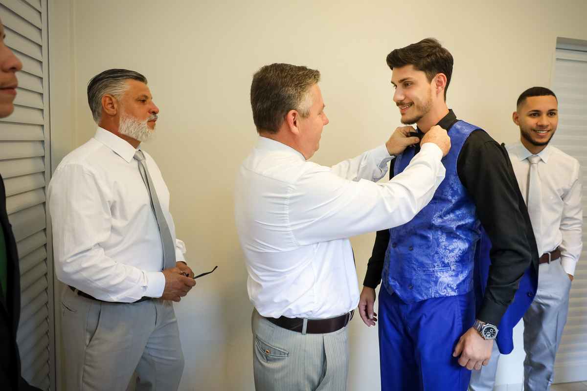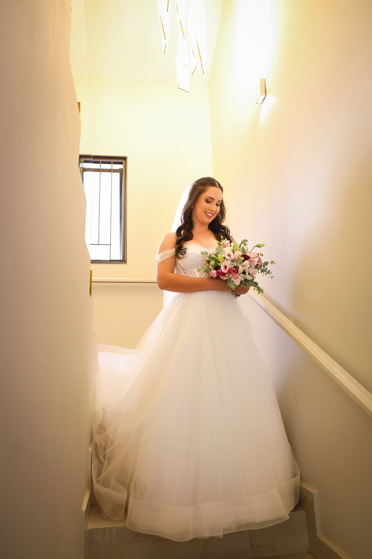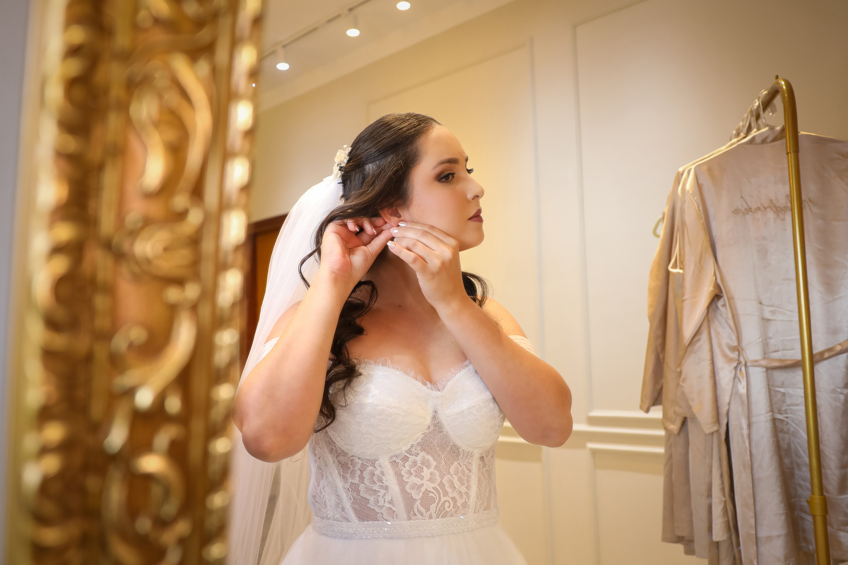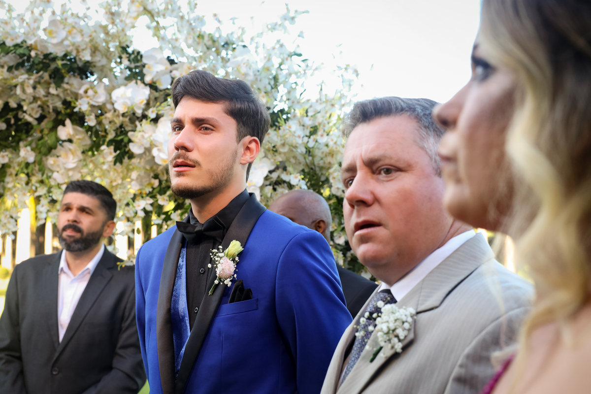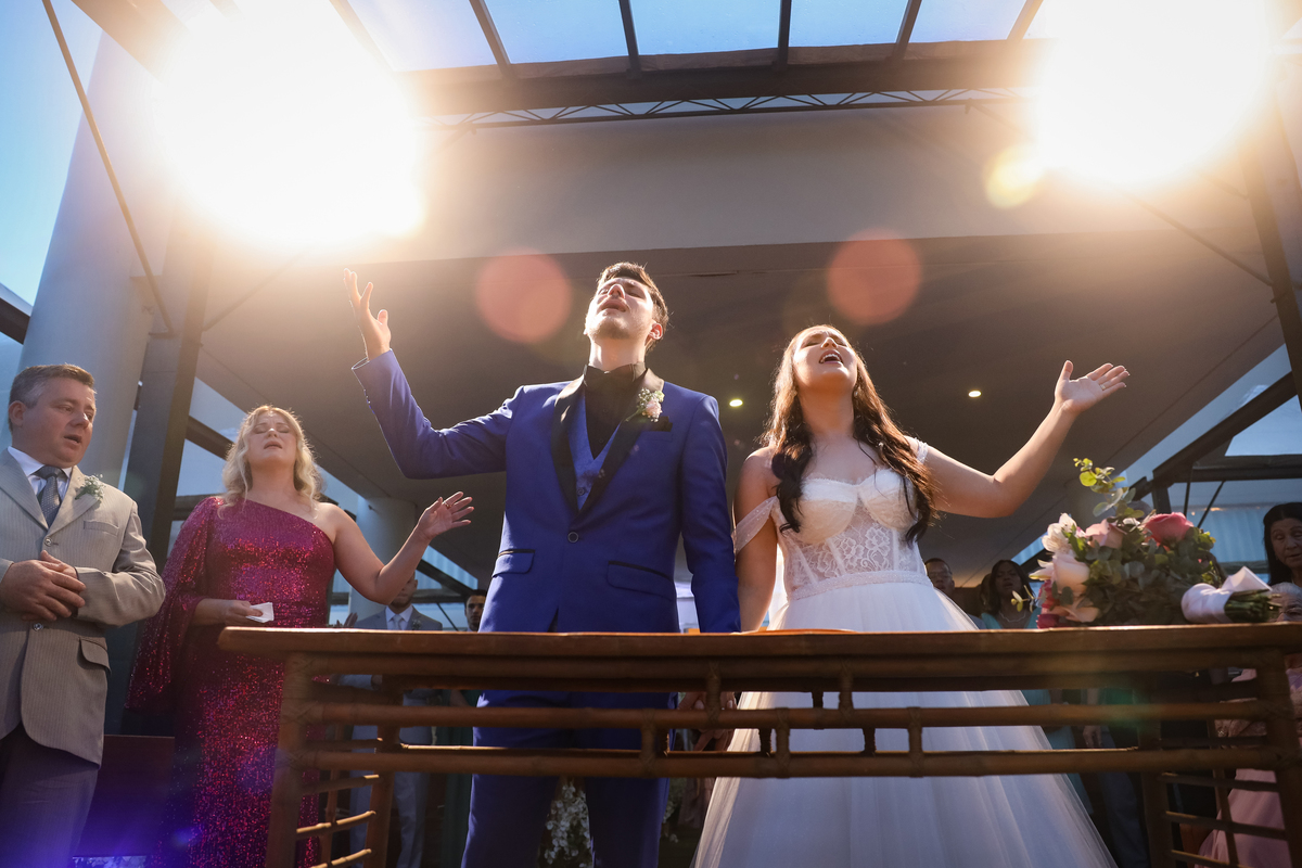 O amor da Emilly e do Gabriel foi celebrado em grande estilo em Bebedouro – SP, em um casamento cheio de emoção, beleza e personalidade. A cerimônia ao ar livre, realizada no espaço externo do salão Villa Ecnny, foi um verdadeiro cenário de conto de fadas. O corredor central, ladeado por flores brancas, levava até um imponente arco floral no altar, onde o casal trocou seus votos em meio a olhares emocionados e sorrisos sinceros.