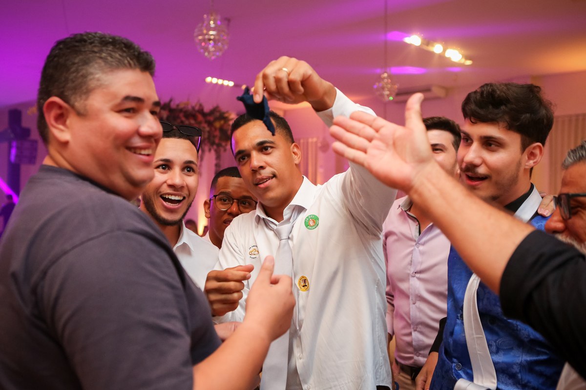 Mas se a cerimônia foi marcada pela emoção, a recepção foi pura animação! Fugindo do tradicional, a Emilly e o Gabriel brindaram sua nova vida juntos com garrafinhas de Coca-Cola — um detalhe descontraído que encantou a todos e arrancou sorrisos. A pista de dança não ficou vazia um minuto sequer: amigos e familiares celebraram com energia do começo ao fim.