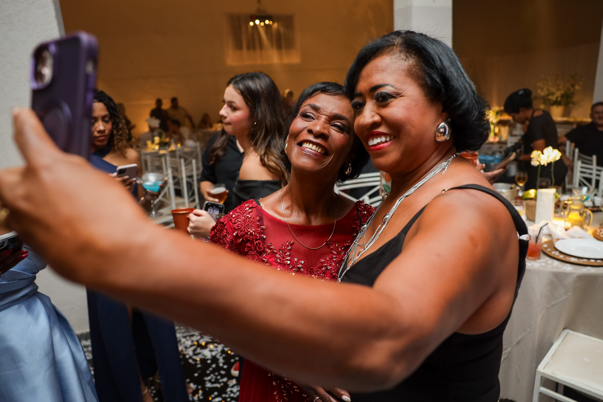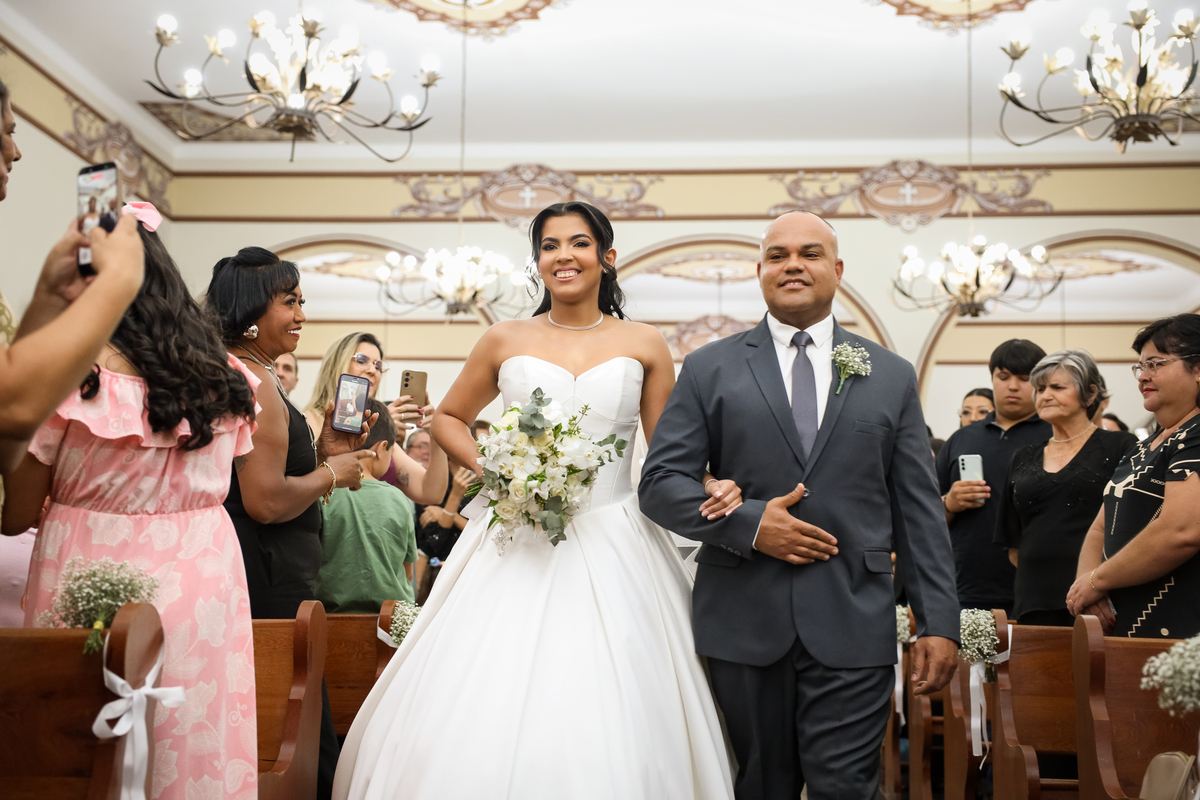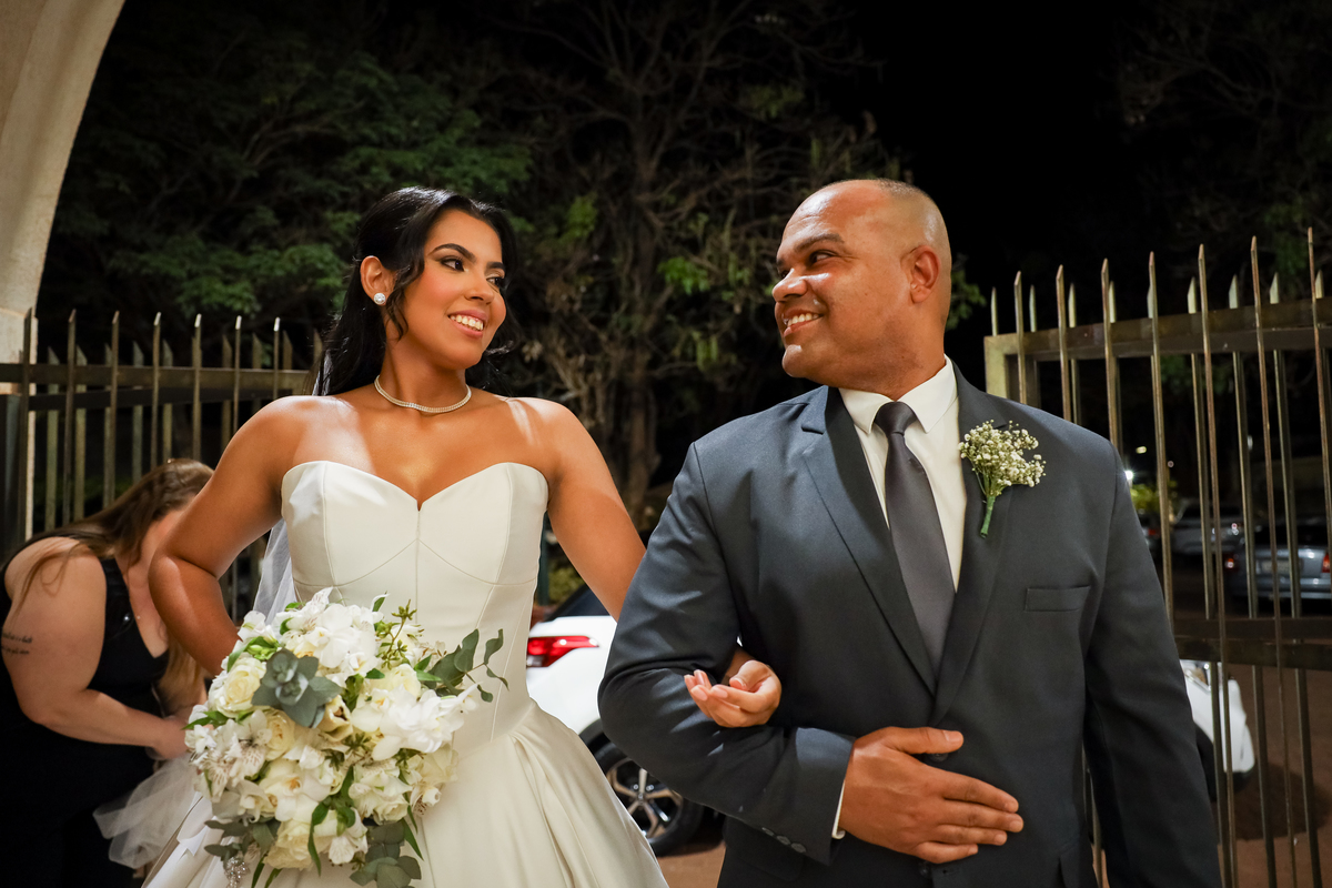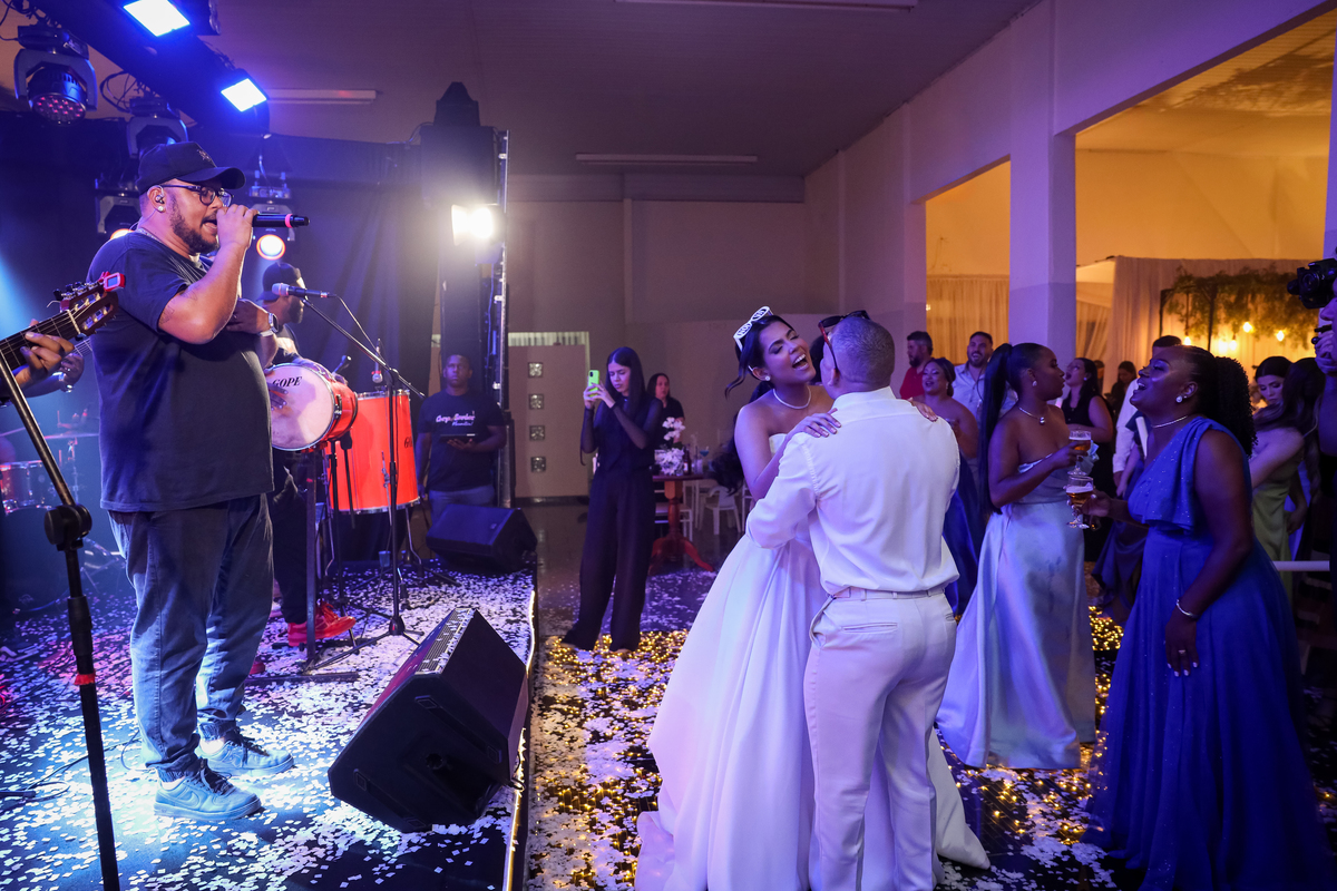 Após o tão esperado “sim”, os convidados foram recebidos no salão Vira Festa, onde a celebração ganhou ainda mais vida. A decoração encantadora, o som animado da banda e a alegria de amigos e familiares criaram o cenário perfeito para uma noite inesquecível. O casal aproveitou cada momento — do brinde à pista de dança — cercado por sorrisos, abraços e muita energia boa.