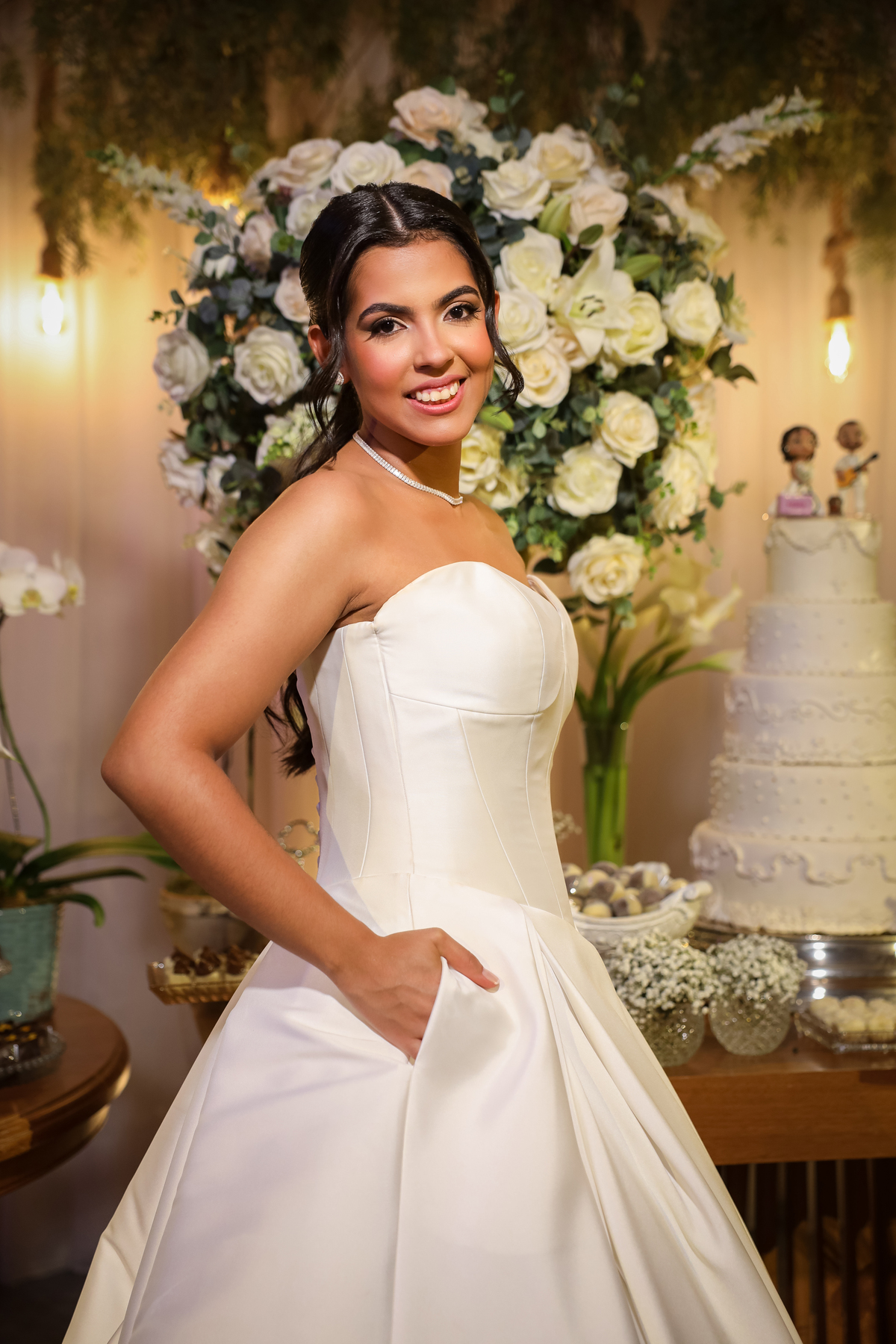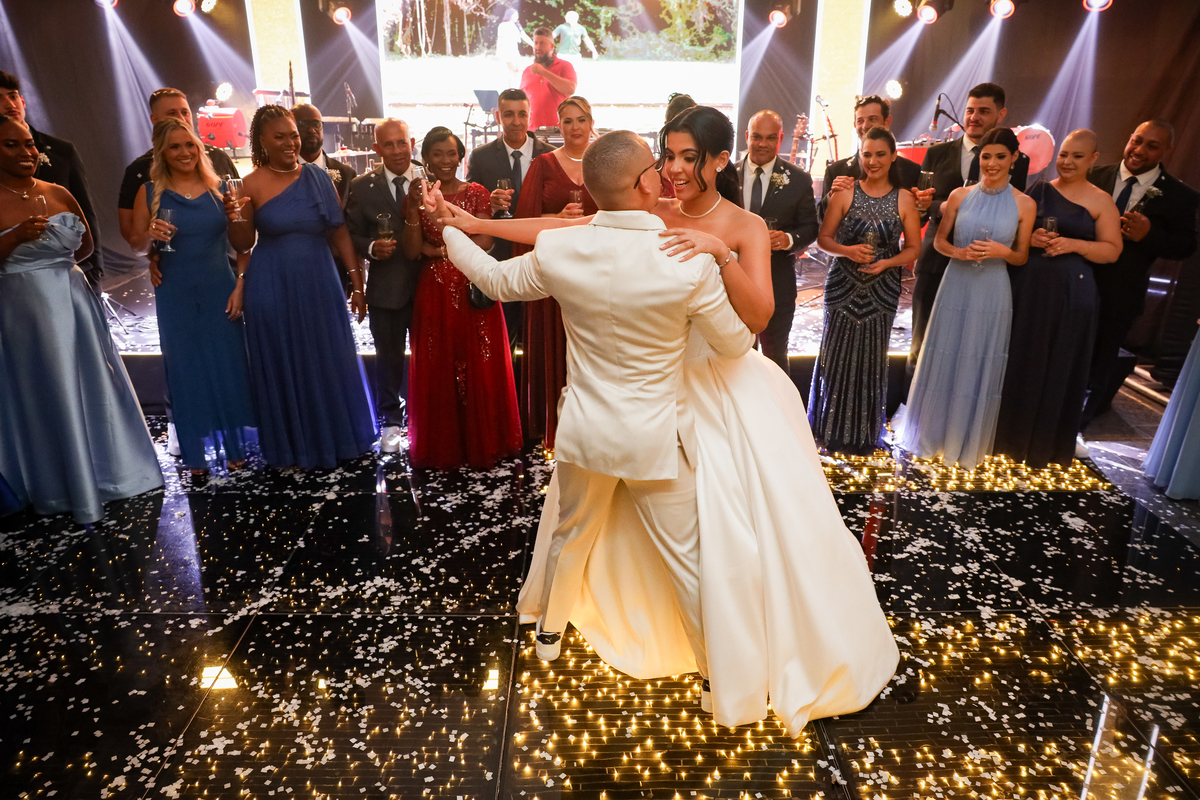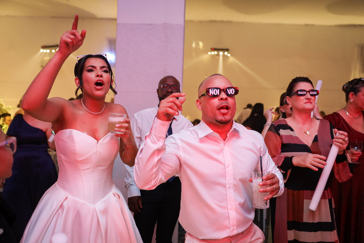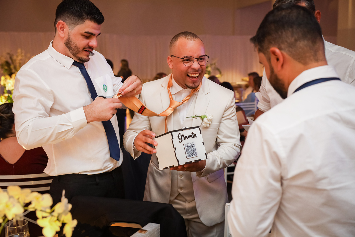 Após o tão esperado “sim”, os convidados foram recebidos no salão Vira Festa, onde a celebração ganhou ainda mais vida. A decoração encantadora, o som animado da banda e a alegria de amigos e familiares criaram o cenário perfeito para uma noite inesquecível. O casal aproveitou cada momento — do brinde à pista de dança — cercado por sorrisos, abraços e muita energia boa.