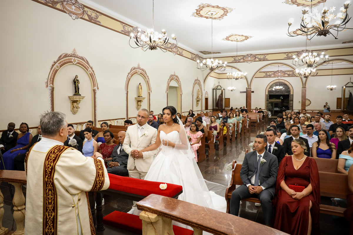O casamento da Maria Laura e do Bruno foi daqueles dias que transbordam emoção do começo ao fim. A cerimônia religiosa aconteceu na Igreja Sagrada Família, em Viradouro – SP, e foi marcada por olhares apaixonados, lágrimas de felicidade e uma atmosfera de fé e gratidão. Cada detalhe parecia pensado para refletir a essência do casal: simples, verdadeiro e cheio de amor.