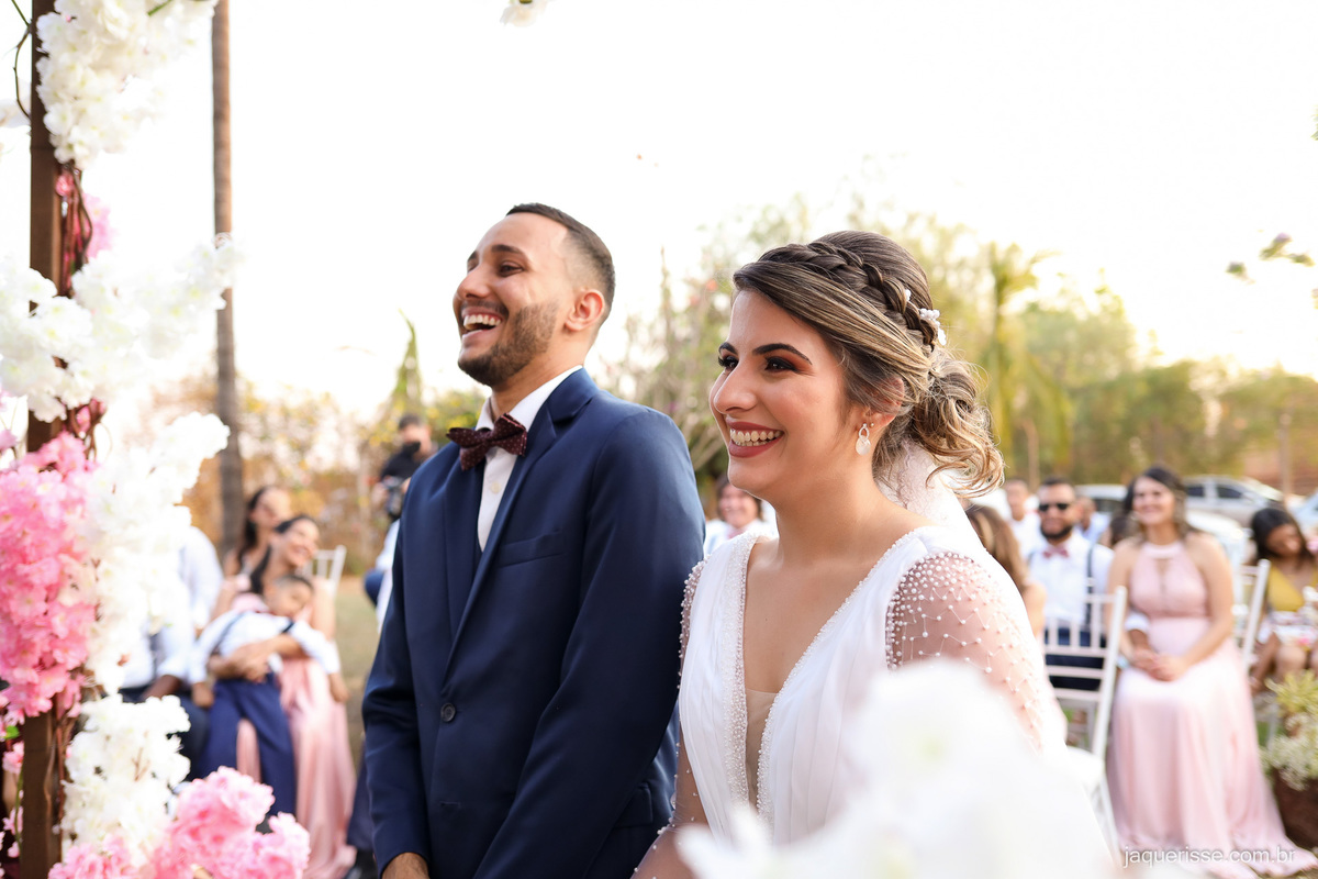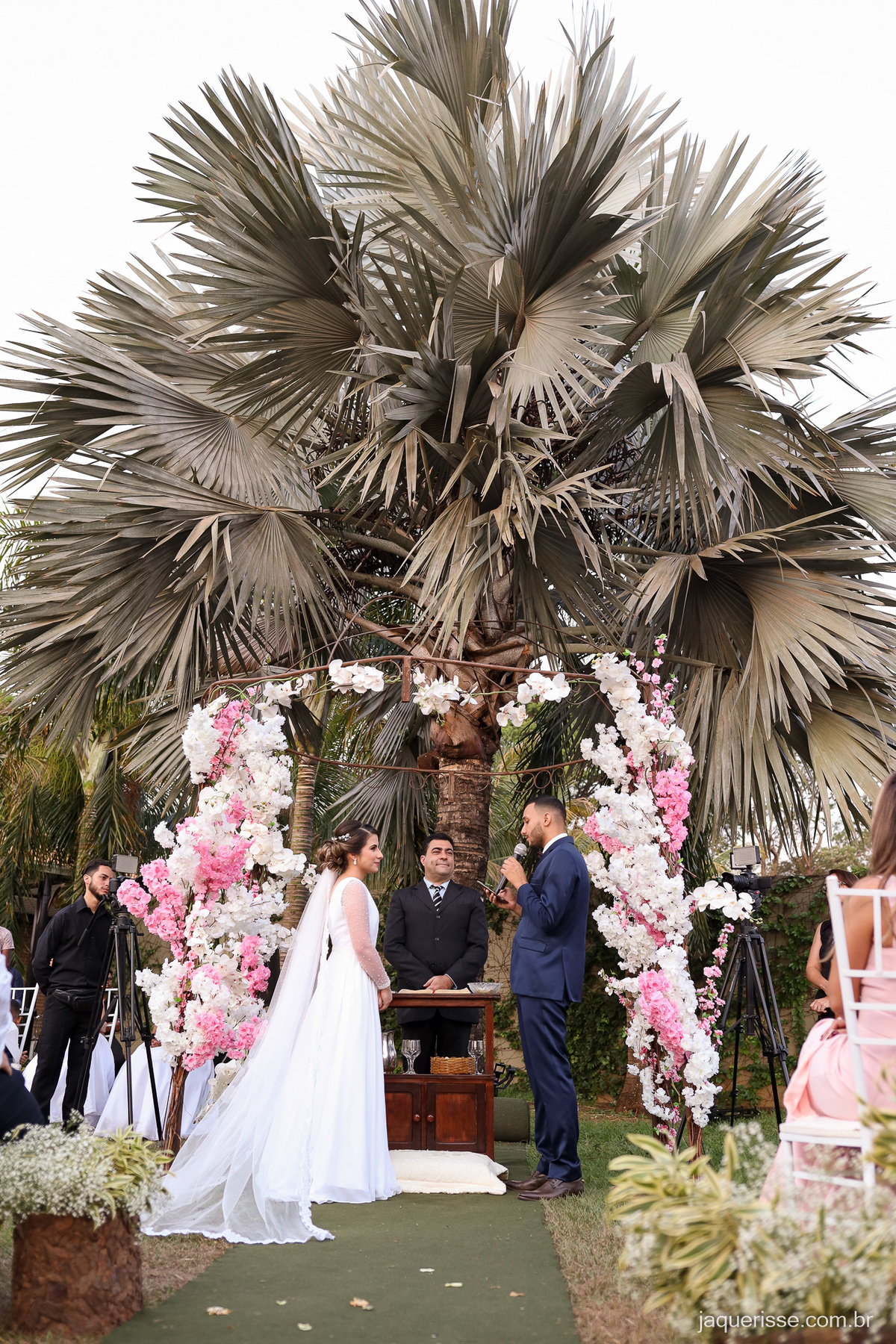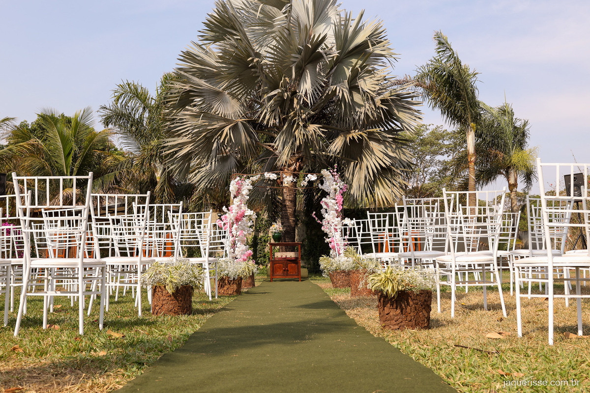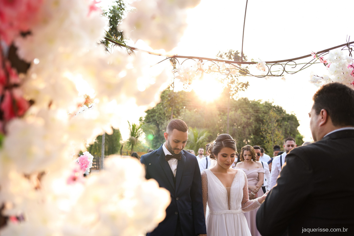 Casamento ao ar livre com um lindo por do sol emoldurando a cerimônia religiosa dos Noivos Ana Clara e Felipe na cidade de Bebedouro - SP, registrado pela equipe da fotografo (a) Jaque Risse Fotografia