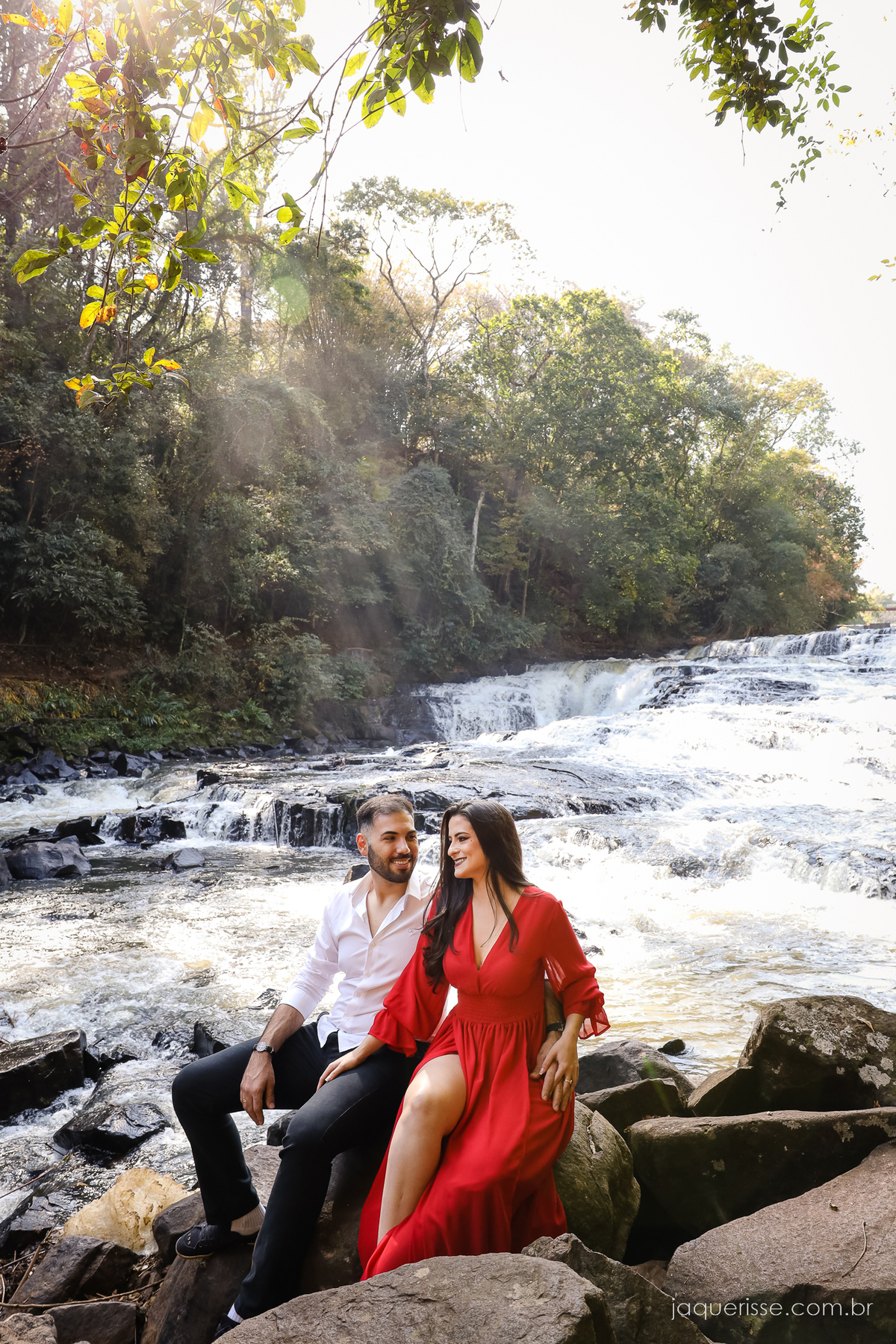 Ensaio Pre Wedding do casal Roberta e Washington, fotografado nas cachoeiras de Brotas, pela fotógrafa Jaque Risse