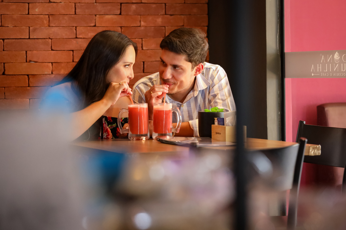 Começamos o ensaio na charmosa Dona Baunilha, lugar aconchegante e repleta de detalhes delicados — e, mais importante, o local onde a Emilly e o Gabriel se encontraram pela primeira vez. Fotografar no lugar onde tudo começou deu um toque intimista e autêntico às imagens. Cada canto da Dona Baunilha trouxe à tona memórias, sorrisos e aquele brilho nos olhos que só o verdadeiro amor carrega.