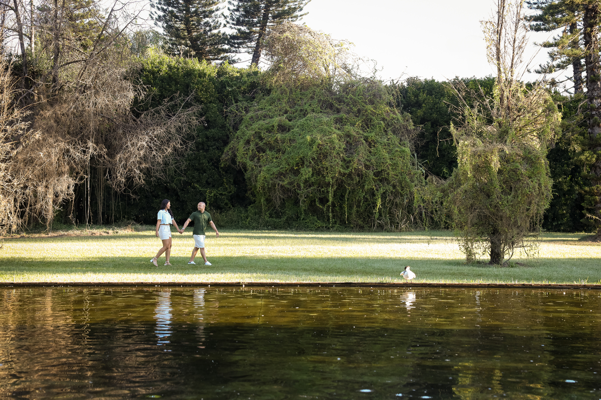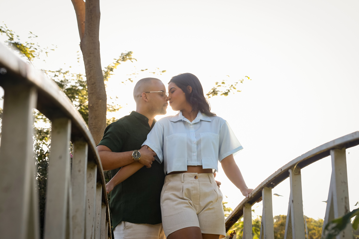 Para um casal com uma conexão tão genuína, a escolha do cenário não poderia ser mais perfeita. O Magic Gardens nos presenteou com uma variedade incrível de locações, cada uma refletindo uma faceta diferente do amor deles. Começamos nossa tarde aproveitando a luz suave que dançava sobre o famoso espelho d'água, criando reflexos que pareciam duplicar a felicidade que eles transbordavam.