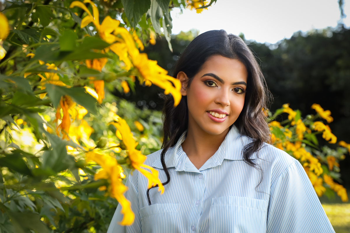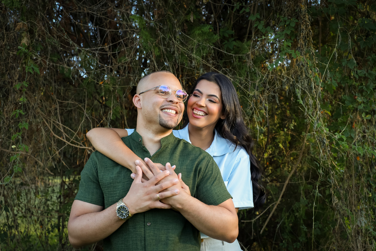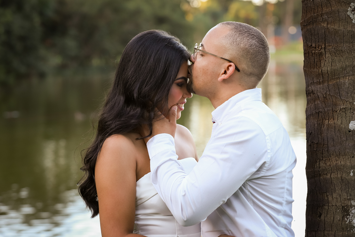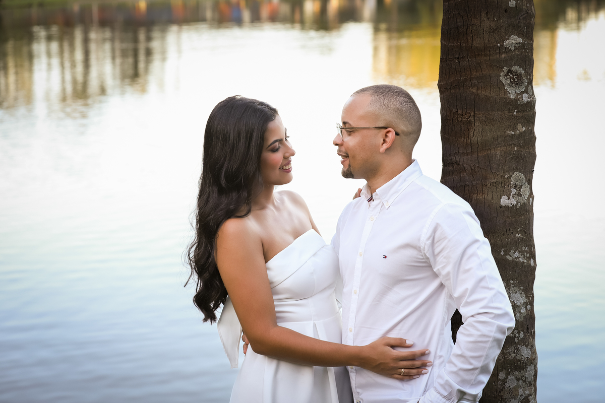 Passeamos pelos gramados verdinhos e nos perdemos sob as árvores espetaculares, que estavam floridas em um tom de amarelo vibrante, criando um cenário de conto de fadas. Cada clique era um registro da cumplicidade, dos sorrisos espontâneos e dos olhares que diziam "sim" muito antes do altar.